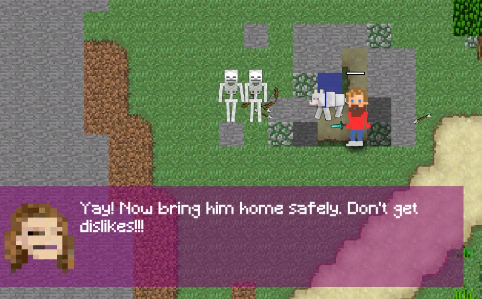 "Go, doggy! Get 'em!" (Pewds when Sven is attacking a skeleton)
